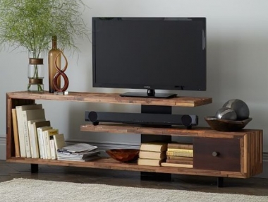 Πρωτότυπο ξύλινο τραπεζάκι τηλεόρασης σε ίσια γραμμή, από ασπρόξυλο. Περασμένο με κάσια και οικολογικό βερνίκι εμποτισμού.