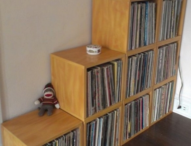 Διαιρούμενη σύνθεση αποθήκευσης δίσκων, και όχι μόνο, από ξύλινους κύβους σε όποια διάσταση εσείς θέλετε, από mdf με καπλαμά anegre, βαμμένοι στο χρώμα τους με οικολογικό βερνίκι.