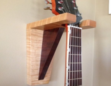 Ξύλινη επιτοίχια βάση για έγχορδα μουσικά όργανα από ξύλο σφένδαμο μουαρέ, σε δίχρωμη απόχρωση.