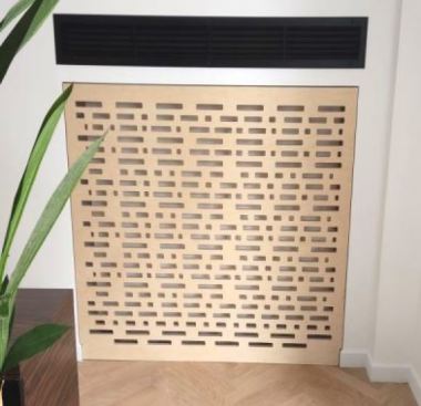 Μοντέρνα κάλυψη καλοριφέρ από διάτρητο κόντρα πλακέ θαλάσσης σημύδα. Μία φρέσκια ιδέα για minimal χώρους.