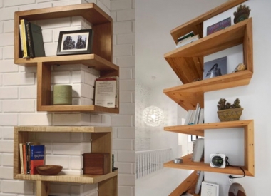 Τα γωνιακά ξύλινα ράφια μπορούν να δημιουργήσουν μια χρηστική και καλαίσθητη βιβλιοθήκη. Αφήστε τη φαντασία σας ελεύθερη και δημιουργήστε μια πρωτότυπη σύνθεση. Η ανεκμετάλευτη κόγχη του τοίχου θα γίνει ένας πολύτιμος χώρος.
