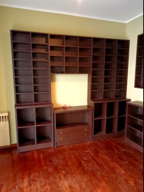Μοντέρνα επιπλοσύνθεση τζακιού από κόντρα πλακέ θαλάσσης επενδεδυμένο με καπλαμά δρυς. Περιλαμβάνει βιβλιοθήκη με μεταλλικά ράφια, κρυφά ντουλάπια και θέση για τηλεόραση.
