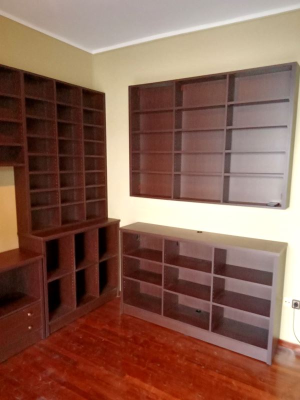 Χειροποίητο γραφείο και βιβλιοθήκη από μασίφ ξύλο καρυδιάς. Ταμπλαδωτά πορτάκια, κλασική κορνίζα οροφής & τραβηχτά κολωνάκια. Κατασκευή για μια ολόκληρη ζωή.