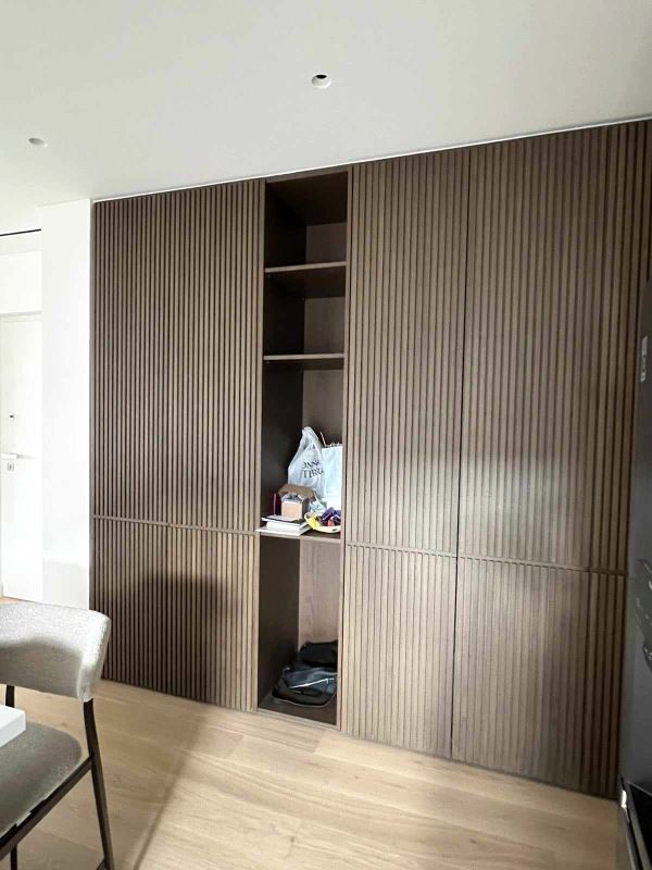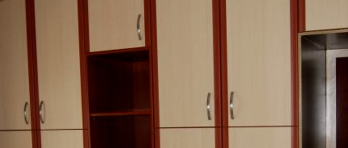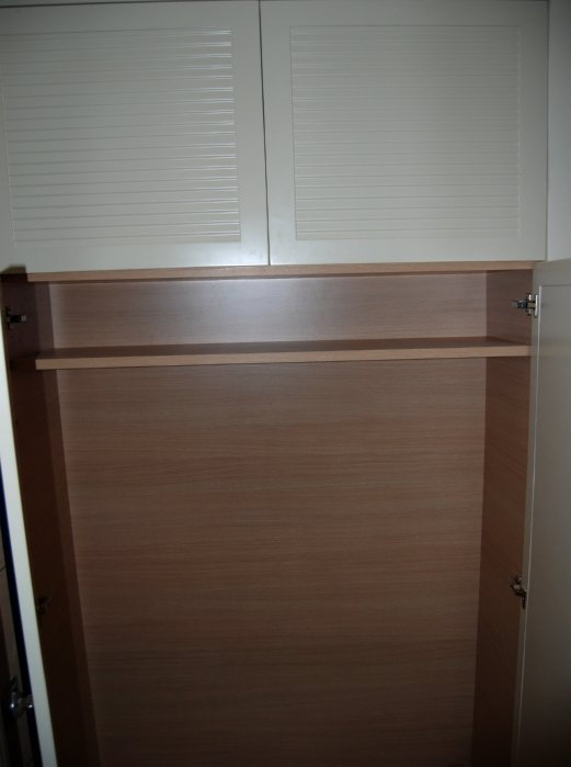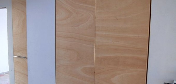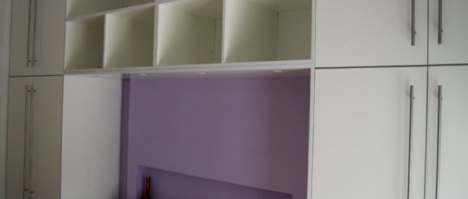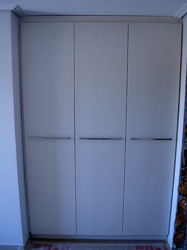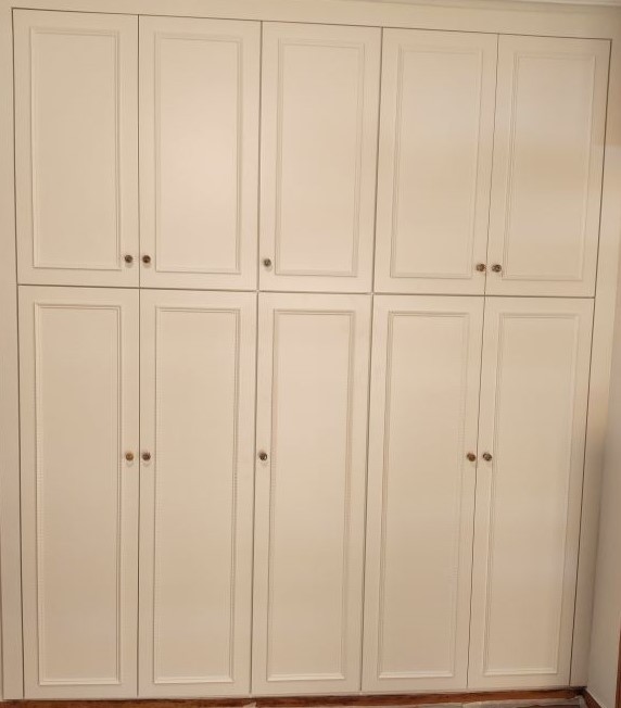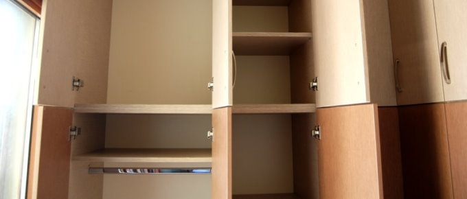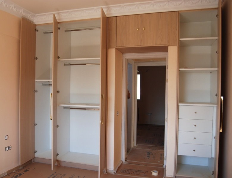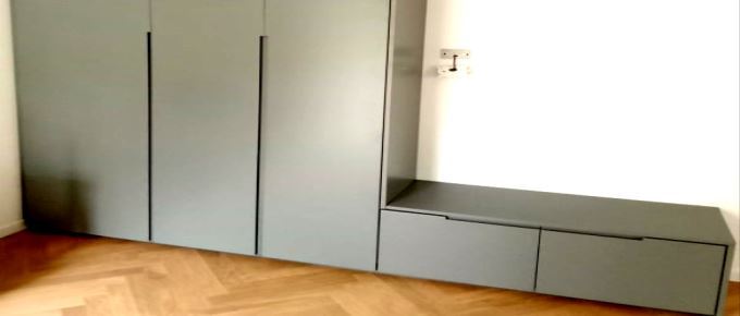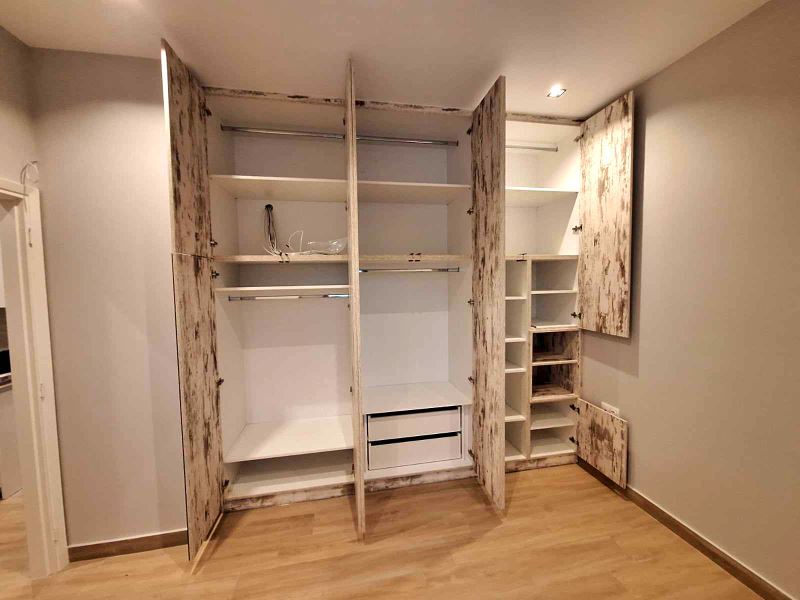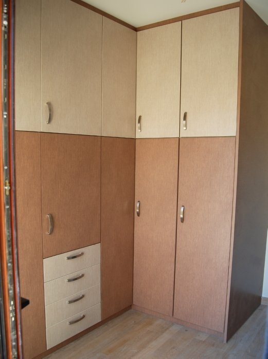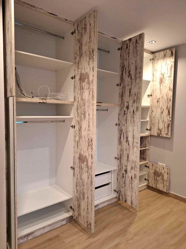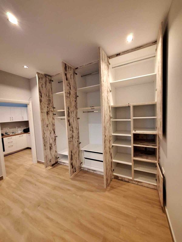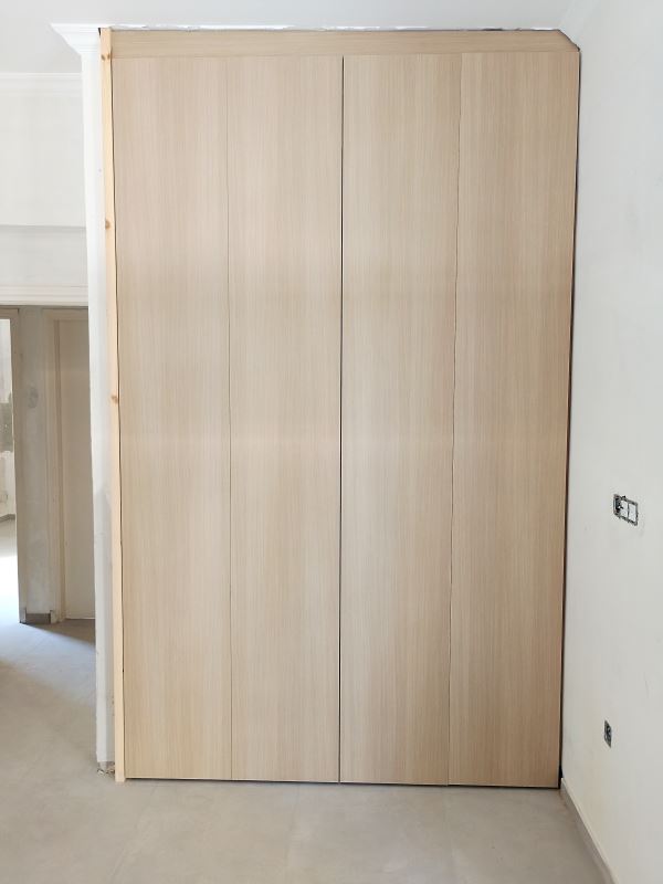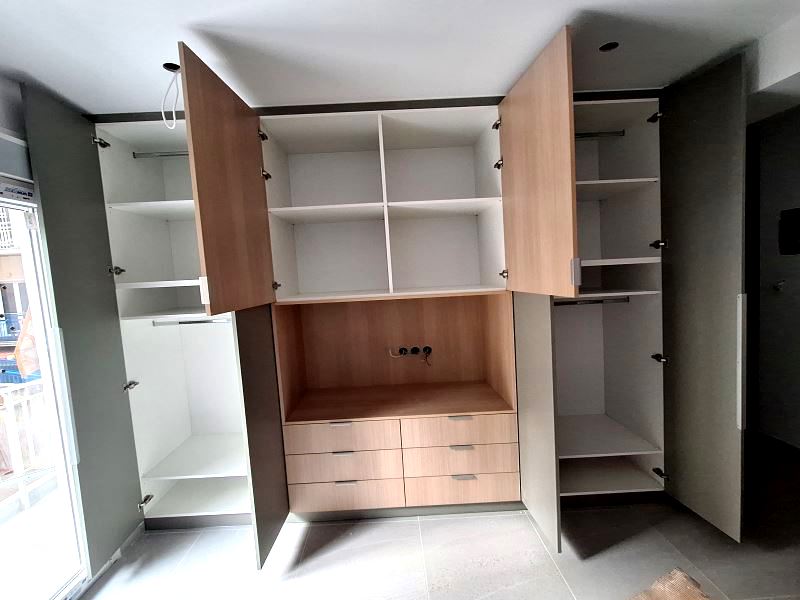 Διαμόρφωση παλιάς χτιστής ντουλάπας με εσωτερικές καλύψεις από έγχρωμη μελαμίνη, κουτιά από έγχρωμη μελαμίνη EGGER , πόρτες μέχρι κάτω από έγχρωμη μελαμίνη ΑΚΡΙΤΑΣ, μεντεσέδες BLUM και μηχανισμοί push to open για άνοιγμα χωρίς πόμολα.