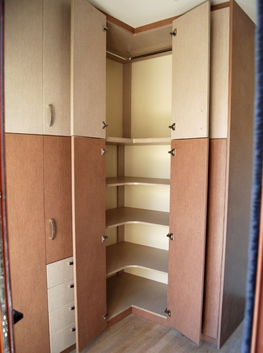 Ντουλάπα δωμάτιο από έγχρωμη μελαμίνη ΑΚΡΙΤΑΣ, με συρόμενες κρυφές ντουλάπες με περιστρεφόμενες ρόδες, γωνιακή ραφιέρα, εσωτερικά συρτάρια και εσωτερική κάλυψη κολεκτέρ.